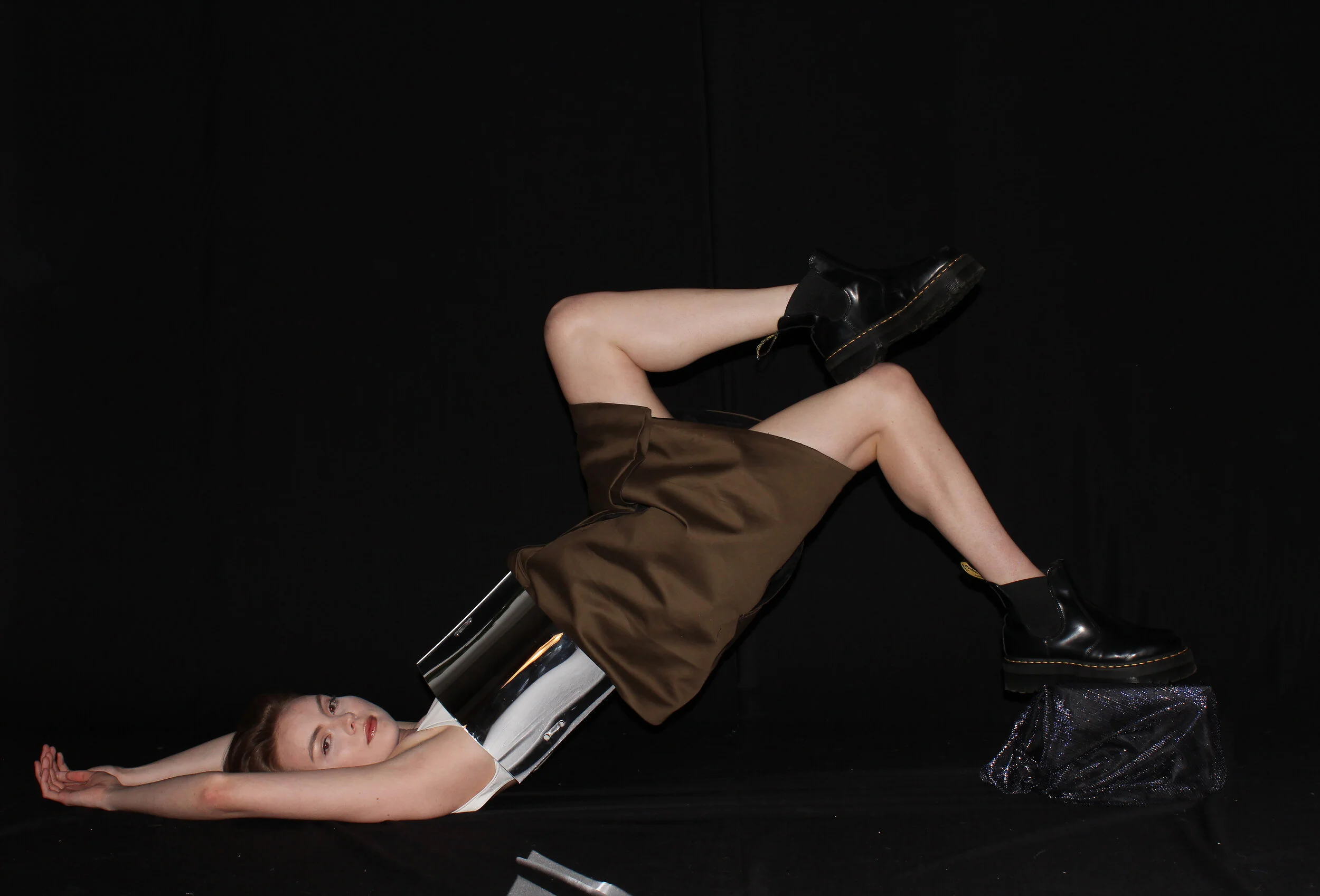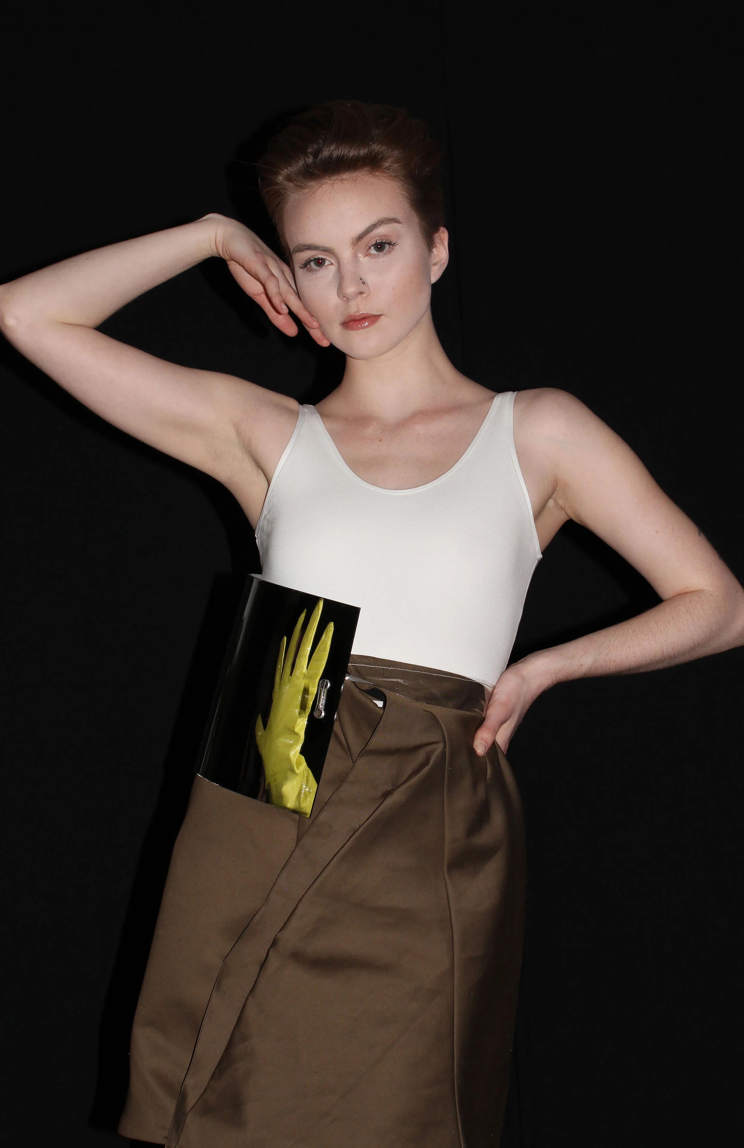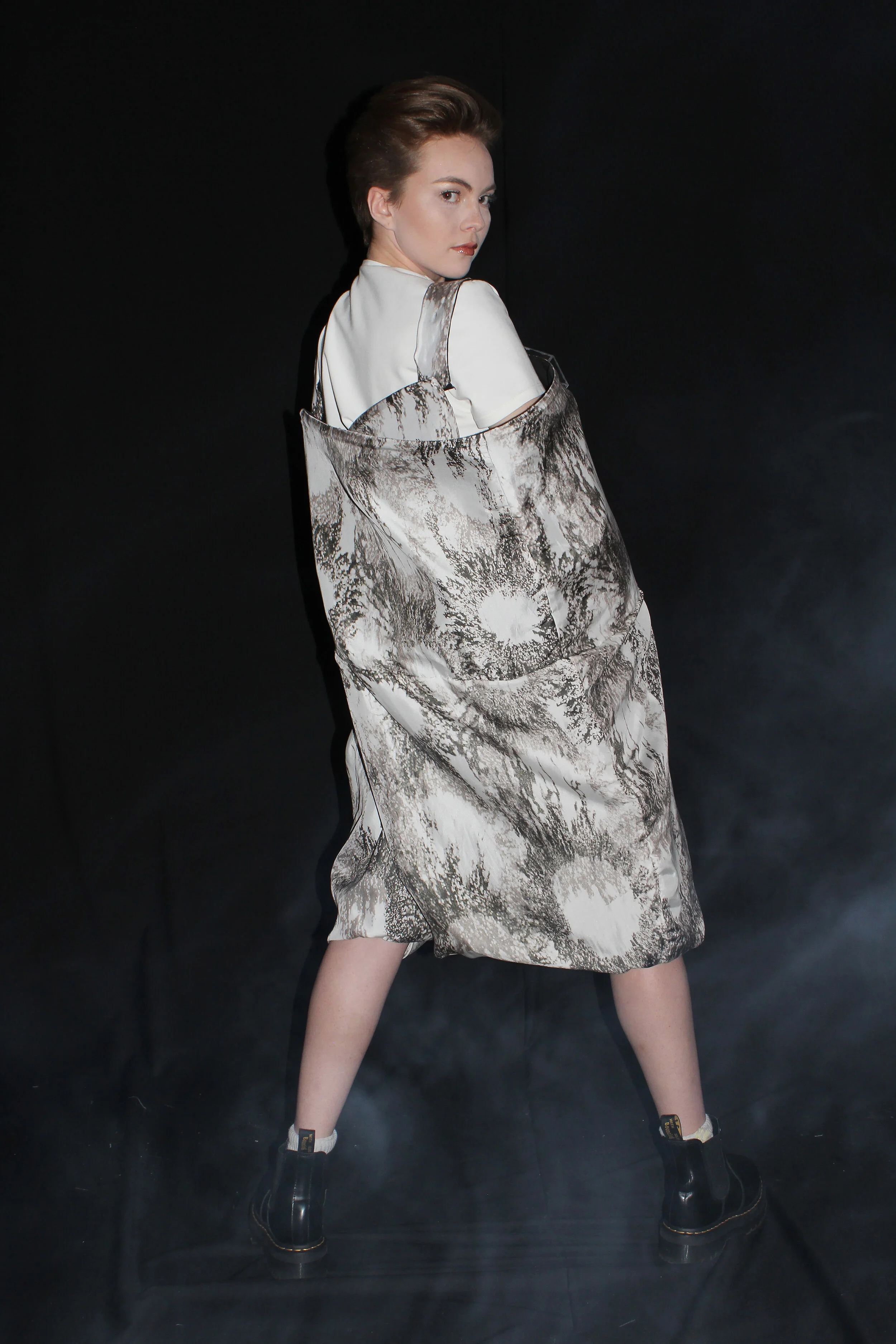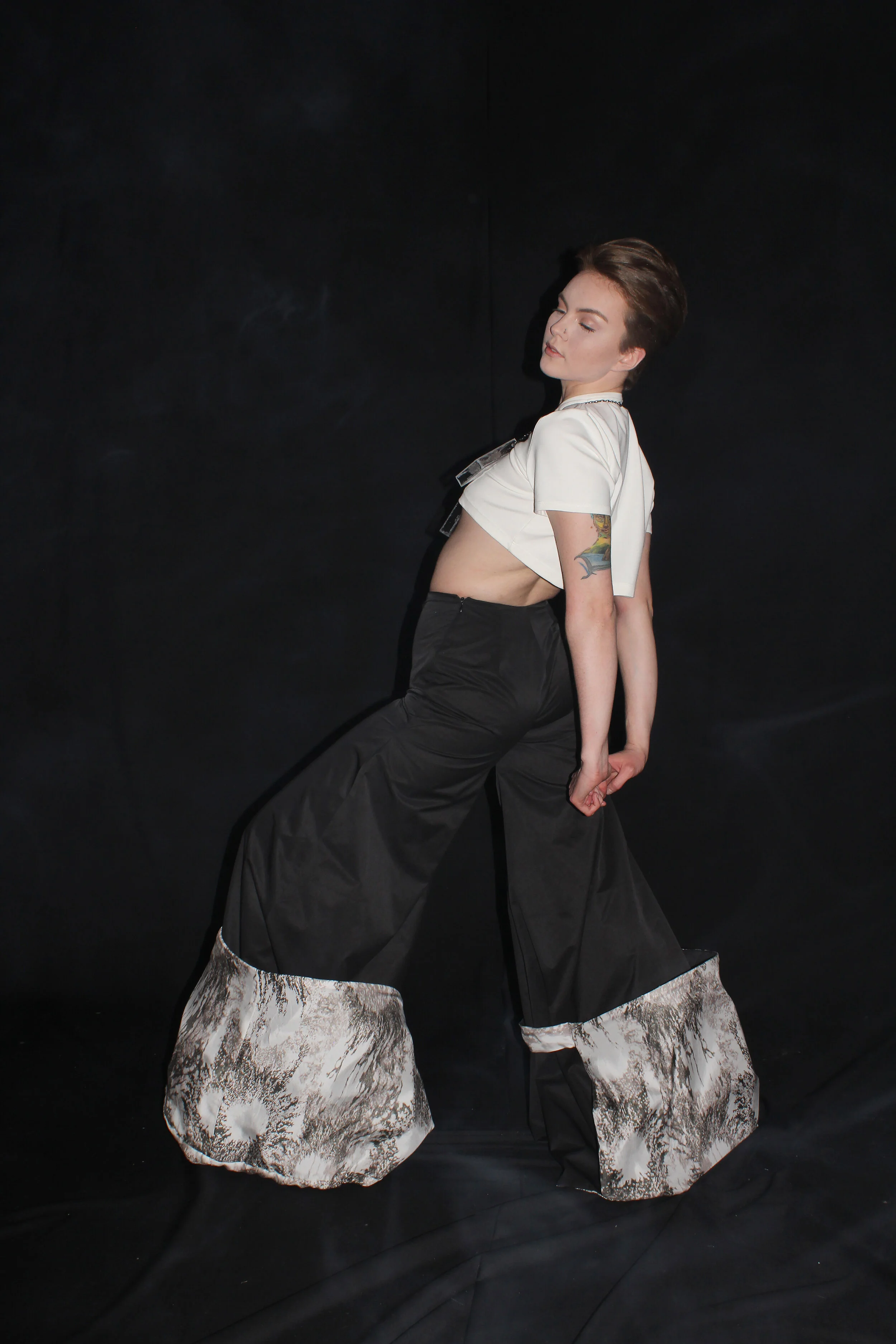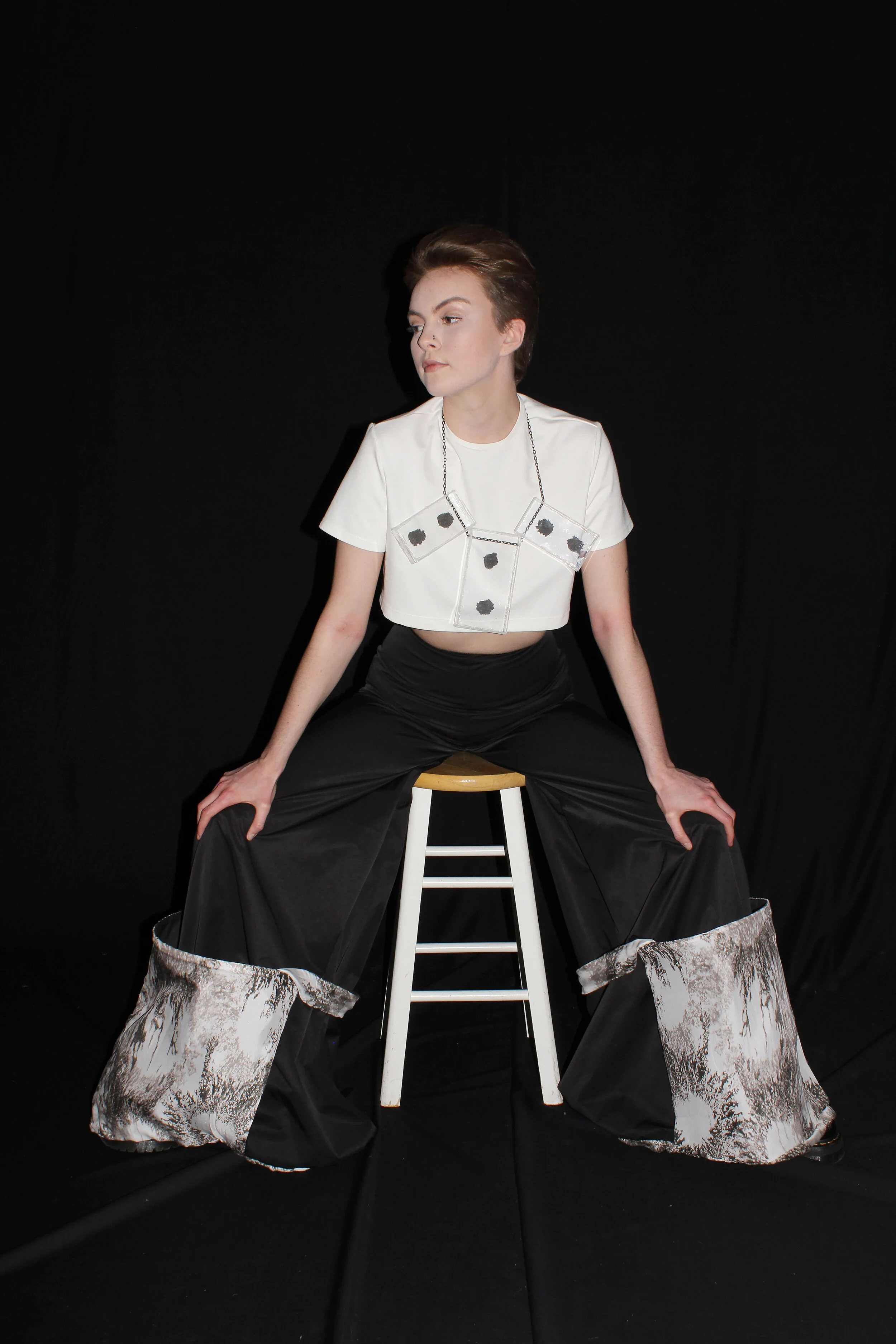 Magnetism: Reflecting & Retracting questions what magnetism means & how it can be translated through fashion. Magnetism is understood conceptually through illusions. These illusions take the form of hidden magnetics, “floating” pockets, & complicated silhouettes. Transformation is another aspect that is highlighted in this collection. A majority of the garments have the ability to take on different “looks”. Whether it is by shedding a layer or changing the garment completely. The garments are meant to be fun and whimsical.